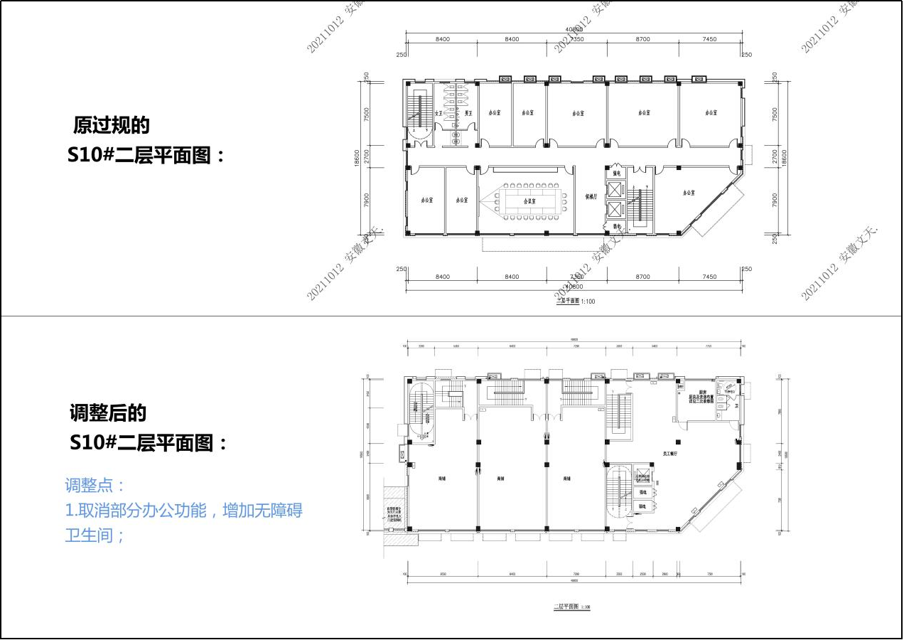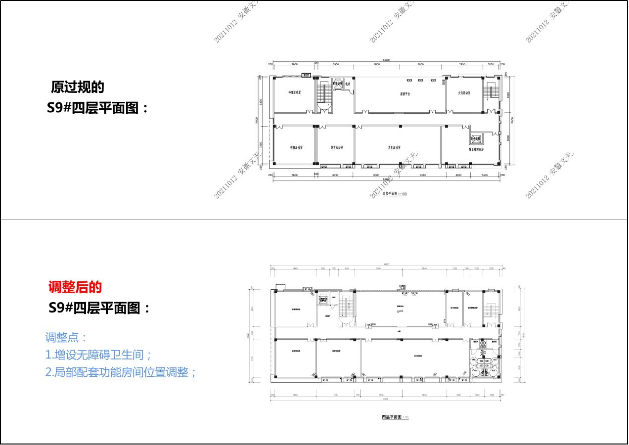 该项目原设计方案于2021年10月批准,目前项目施工图按照原设计方案深化满足不了现行规范的要求,现项目单位申请按照现行规范要求,调整S9#、S10#内部功能。