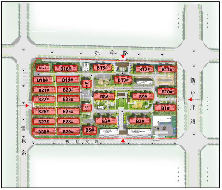为应对市场的变化,提升购房业主更佳的居住体验,故对小区景观进行优化提升。并根据景观相应地方调整了大门造型。同时调整了部分立面阳台和门窗开启方式。 二、调整内容: 1. 小区内部景观调整,调整仅针对内部景观、绿地面积(绿地率由35.01% 调整为35.12%)及停车位,消防道路、消防登高场地、楼栋位置等均未做调整; 2. 小区东、西、南、北大门平面及立面调整,建筑面积不变,大门调整前后均为景观构筑物; 3. 阳台窗户竖向窗洞口面积加大,同时在保持窗洞口宽度不变的情况下,立面门窗分割及开启方式调整。 4.B2#、B3#、B5#单元入户门厅造型调整。
