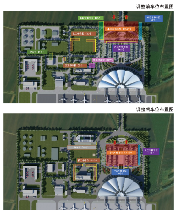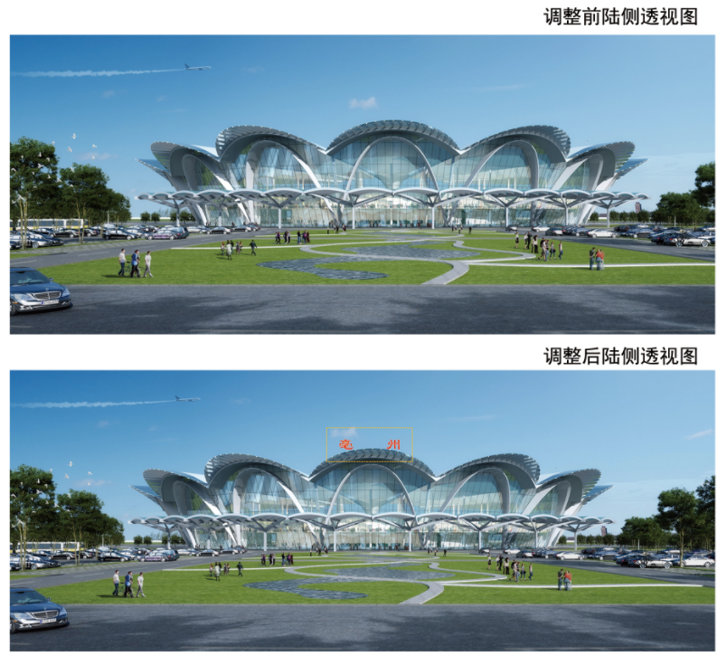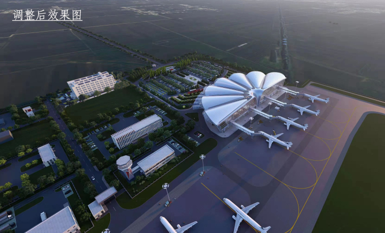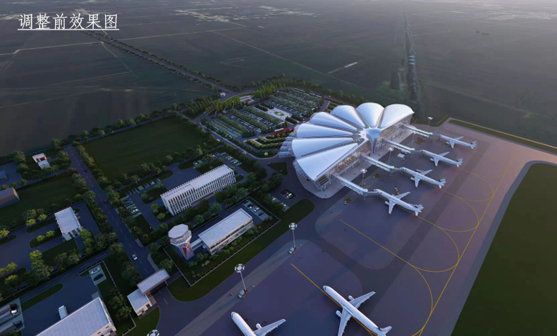 一、调整原因:为增强机场停车保障能力、提升航站楼外立面效果,满足机场运营住宿和公安业务需求,项目单位申请调整建筑规划设计方案。