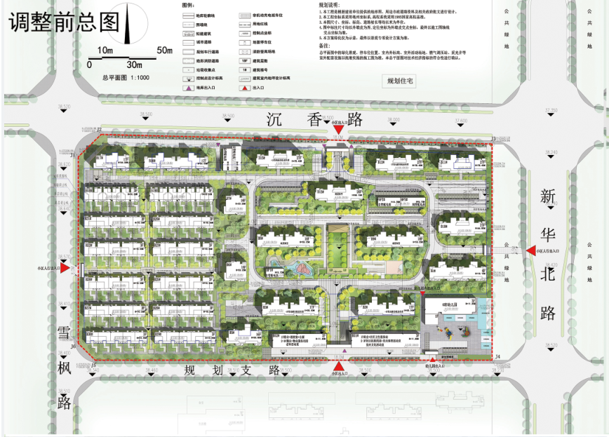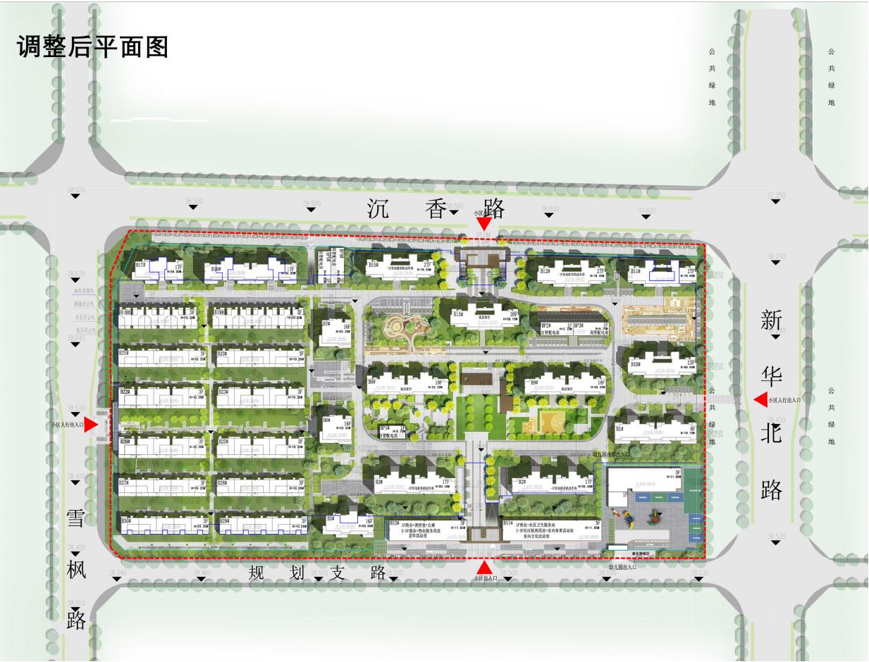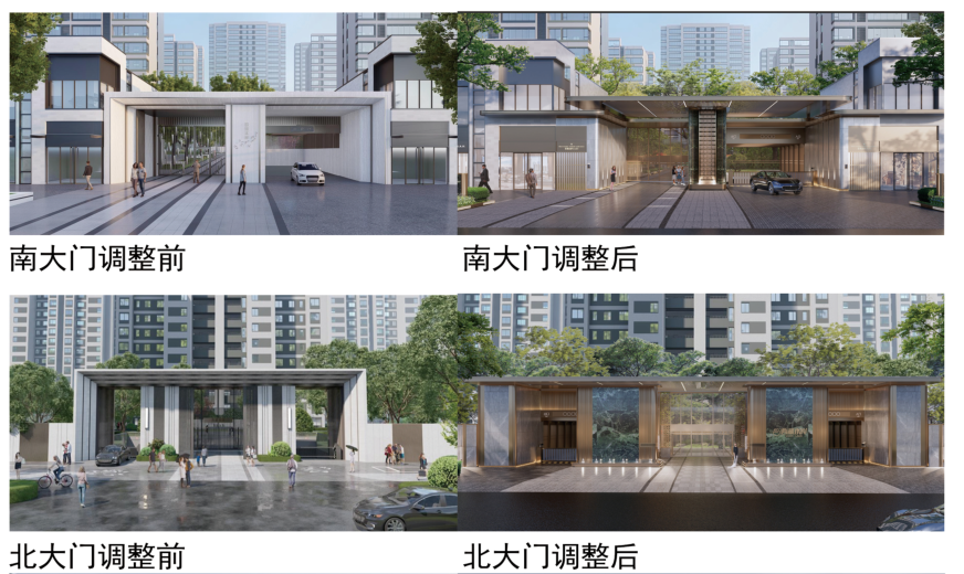 一、调整原因:原方案于 2022 年 12 月 28 日第 22 次市自然资源和规划管理委员会办公会研究通过。为提升小区环境品质,优化住宅外立面设计,项目单位申请对小区景观设计、大门、窗台高度等进行调整。