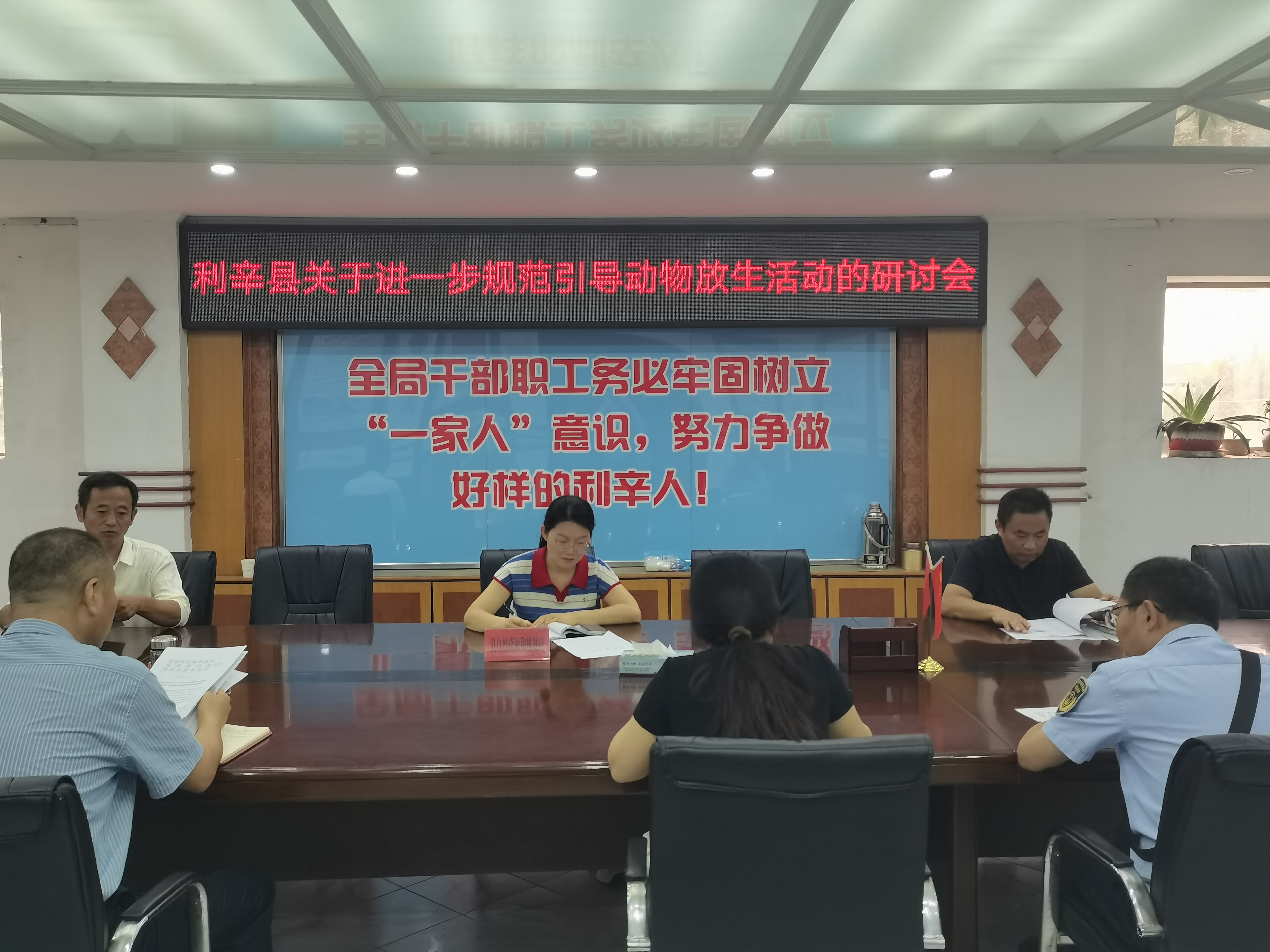 近日,为进一步规范引导动物放生活动,坚决打击非法放生行为,维护生态安全,健全部门协作机制和科学监测评估机制,全面提升保护管理能力和水平。利辛县自然资源和规划局党组成员、政治部主任王慧主持,县农业农村局、县宗教事务局参加,联合召开“关于进一步规范引导动物放生活动的研讨会”。