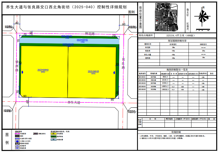 根据《城乡规划法》有关规定,现将养生大道与张良路交口西北角街坊(2025-040)、养生大道与振谯路交口东北角街(2025-042)控制性详细规划公示如下: