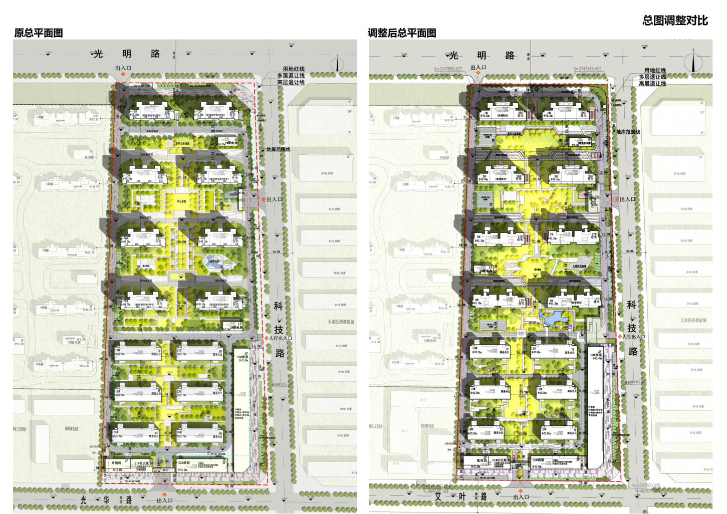1.优化户型产品,提升户型品质。原规划8栋高层住宅,调整为4栋高层(26F)+4栋中高层(17F),降低住宅层数,减少容积率,住宅造型效果同步优化,总体规划布局不变。提升整个社区住宅外立面造型效果,优化社区居住环境体验;