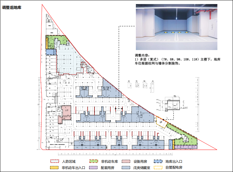 (4)为保障改善业主的车辆安全性和隐私性,提高业主的高品质感受。在多层(复式)主楼下,地库车位根据柱网进行部分墙体分隔。