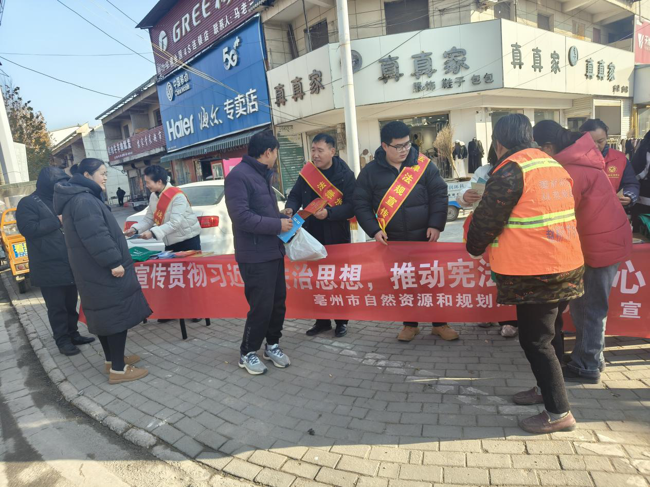 12月3日上午,亳州市自然资源和规划局谯城分局在赵桥乡开展了以“学习宣传贯彻习近平法治思想,推动宪法深入人心”为主题的宣传活动。