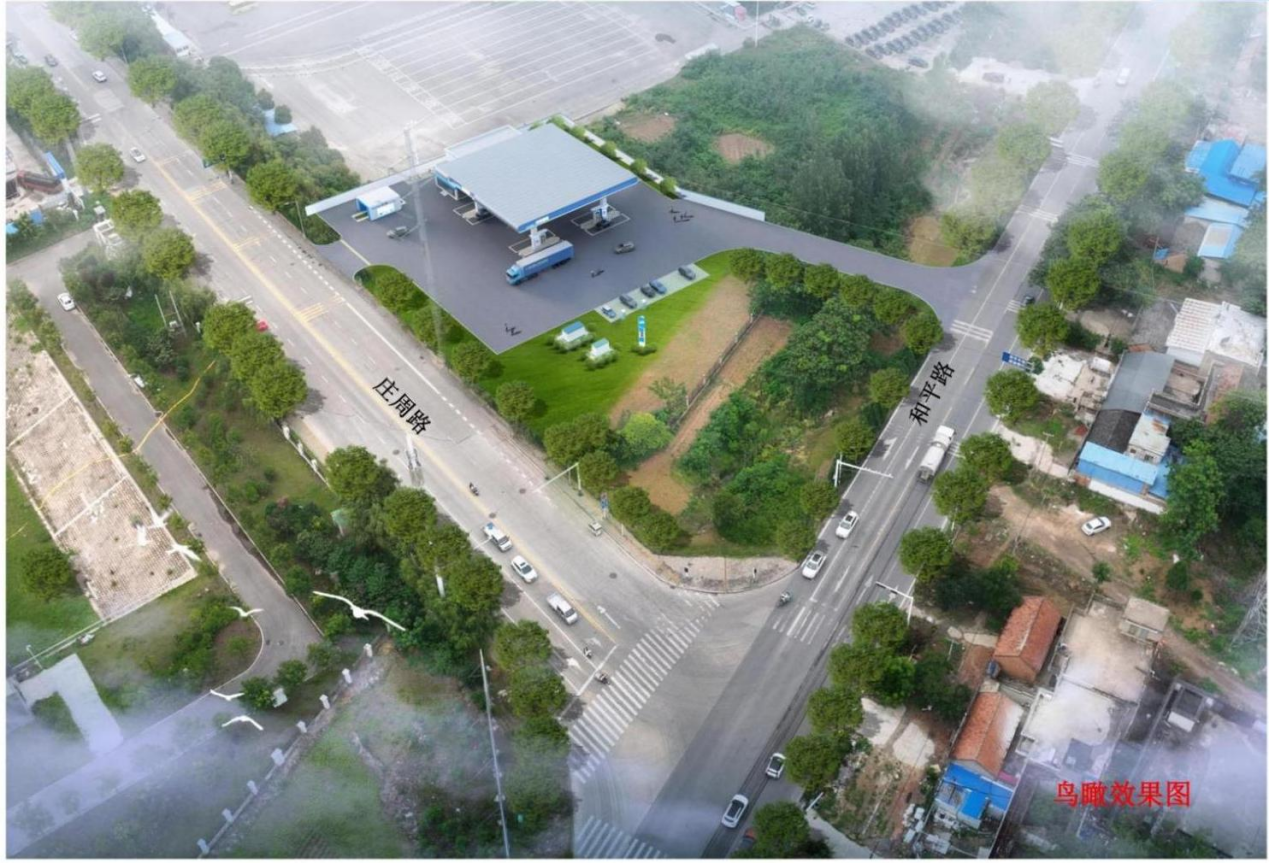 设计说明:地块北侧临和平路,西侧、南侧为公交基地、东侧为庄周路,本规划方案主要有站房、罩棚、加油机、洗车机等满足加油站运营需求的建构筑物。
