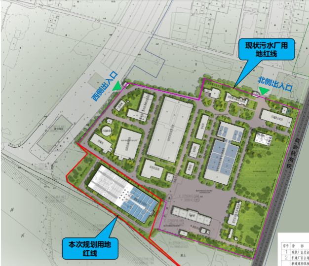 主要规划技术指标:扩建厂区占地面积:5671.73㎡;新建反应沉淀池占地面积2648.08㎡。