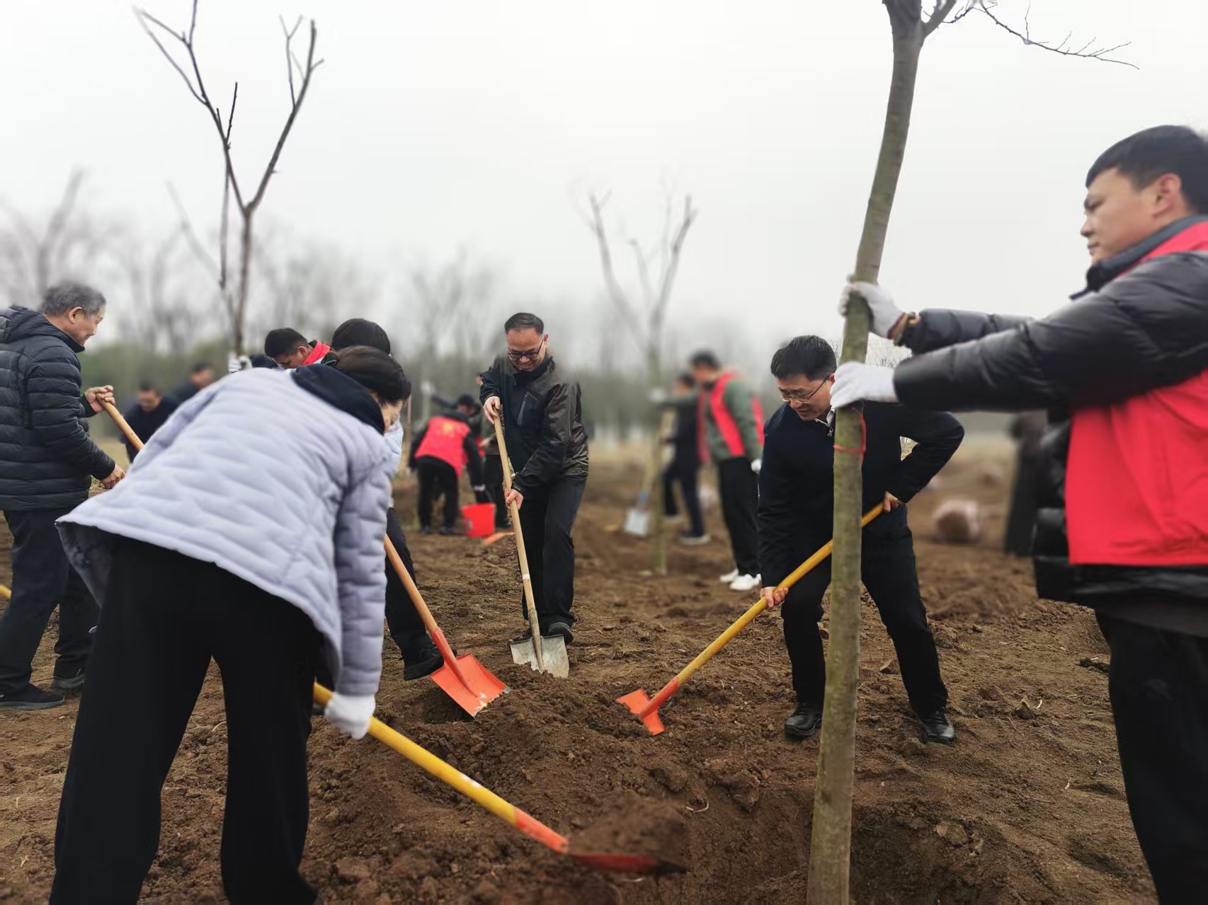 活动现场,全体参与人员手持铁锹、水桶等工具,精神饱满,干劲十足。大家分工协作,从挥锹铲土、扶苗填坑到浇水定根,每一个环节都认真细致、规范有序,现场一番热火朝天的劳动景象。秦凤玉强调要因地制宜,科学开展国土绿化,后期加强管护,提高成活率;大力发展林下经济,如林下种植中药材、食用菌等,提高林产品附加值。