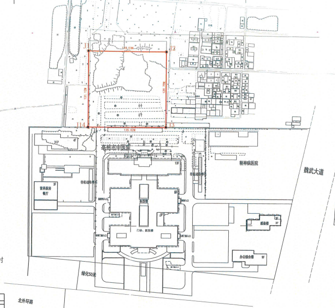 一、用地位置、范围(另详见附图):魏武大道以西、北一环以北(亳州市中医院北侧)。