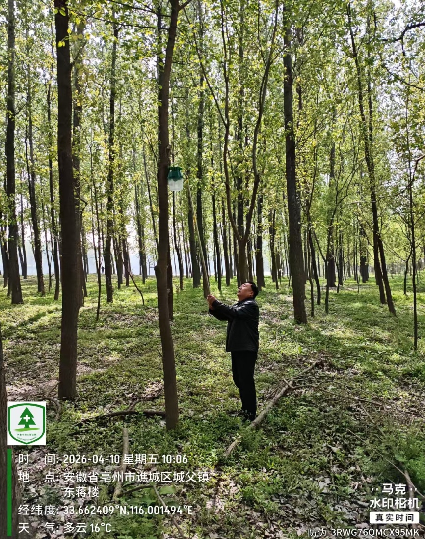 近日,亳州市谯城区全面完成2026年度美国白蛾诱捕器挂设任务,为全区林业生态安全加上“防护锁”。