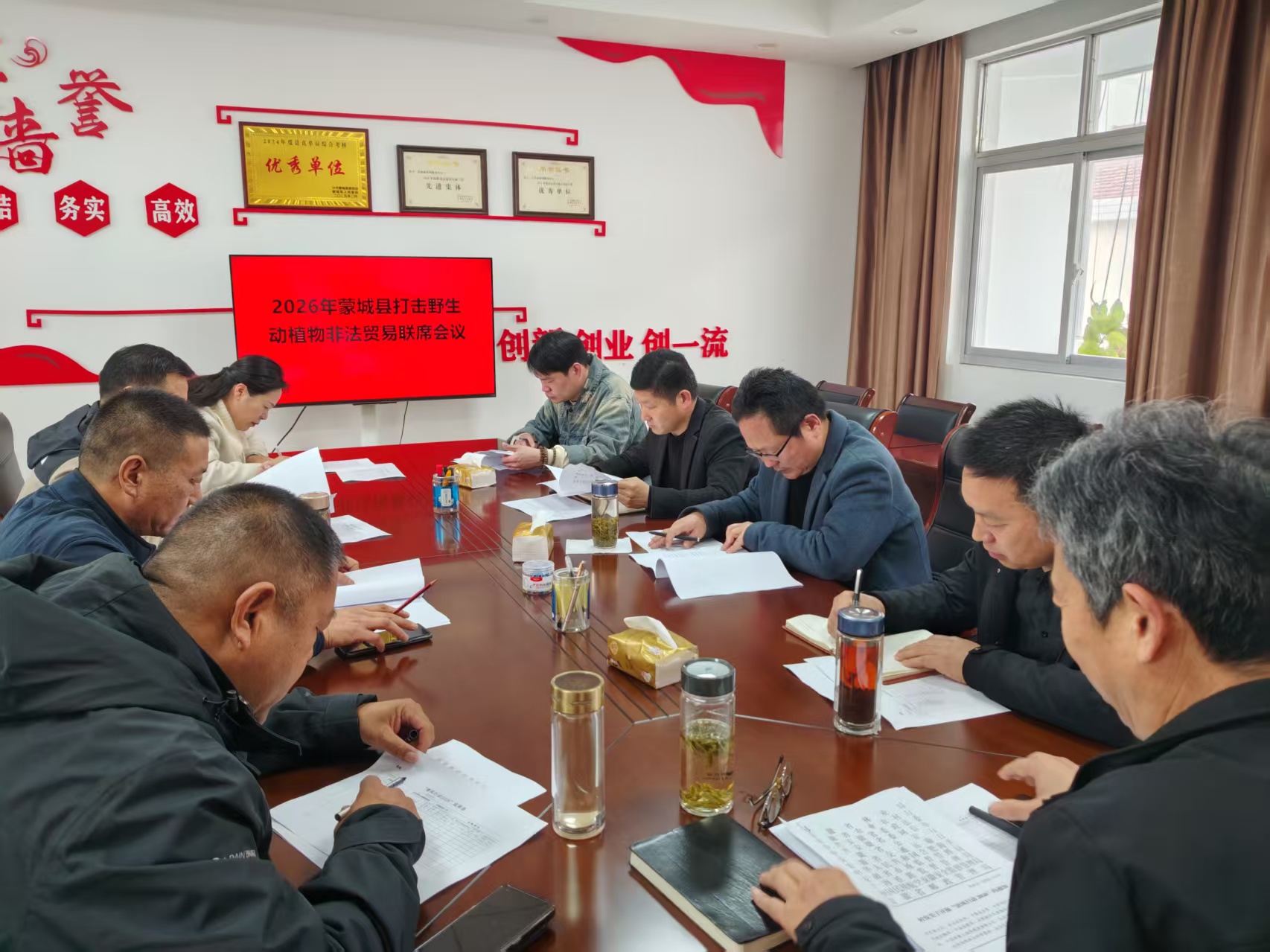 4月14日,蒙城县召开由县林业 、农业农村、公安、市场、网信、交通等多部门参加的打击野生动植物非法贸易联席会议,安排部署野生动植物保护工作。当前正是候鸟迁飞季节,会议要求各部门要加强鸟类等野生动植物栖息地巡护管控,严打非法猎采活动,及时清除粘网、电网、猎夹、猎套、毒饵、诱捕装置等非法猎捕工具;紧盯花鸟市场、集贸市场、餐饮服务经营场所以及人工繁育等重点场所,依法依职严厉查处非法购买、收购、出售、人工繁育、利用、食用野生动植物及其制品行为。各有关执法部门要充分发挥打击野生动植物非法贸易部门间联席会议机制作用,加强执法协作,努力提升执法效能,确保执法行动取得实效。