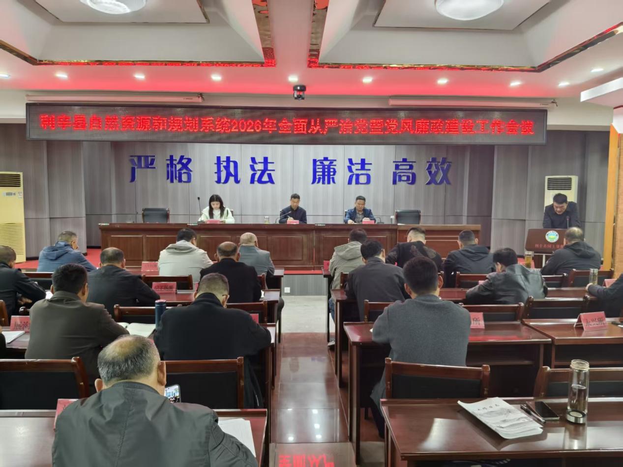 近日,利辛县自然资源和规划系统召开2026年全面从严治党暨党风廉政建设工作会议,局领导班子成员、机关干部职工,各二级机构、股室及(中心)所主要负责人参加会议,驻局纪检监察组相关同志列席会议。